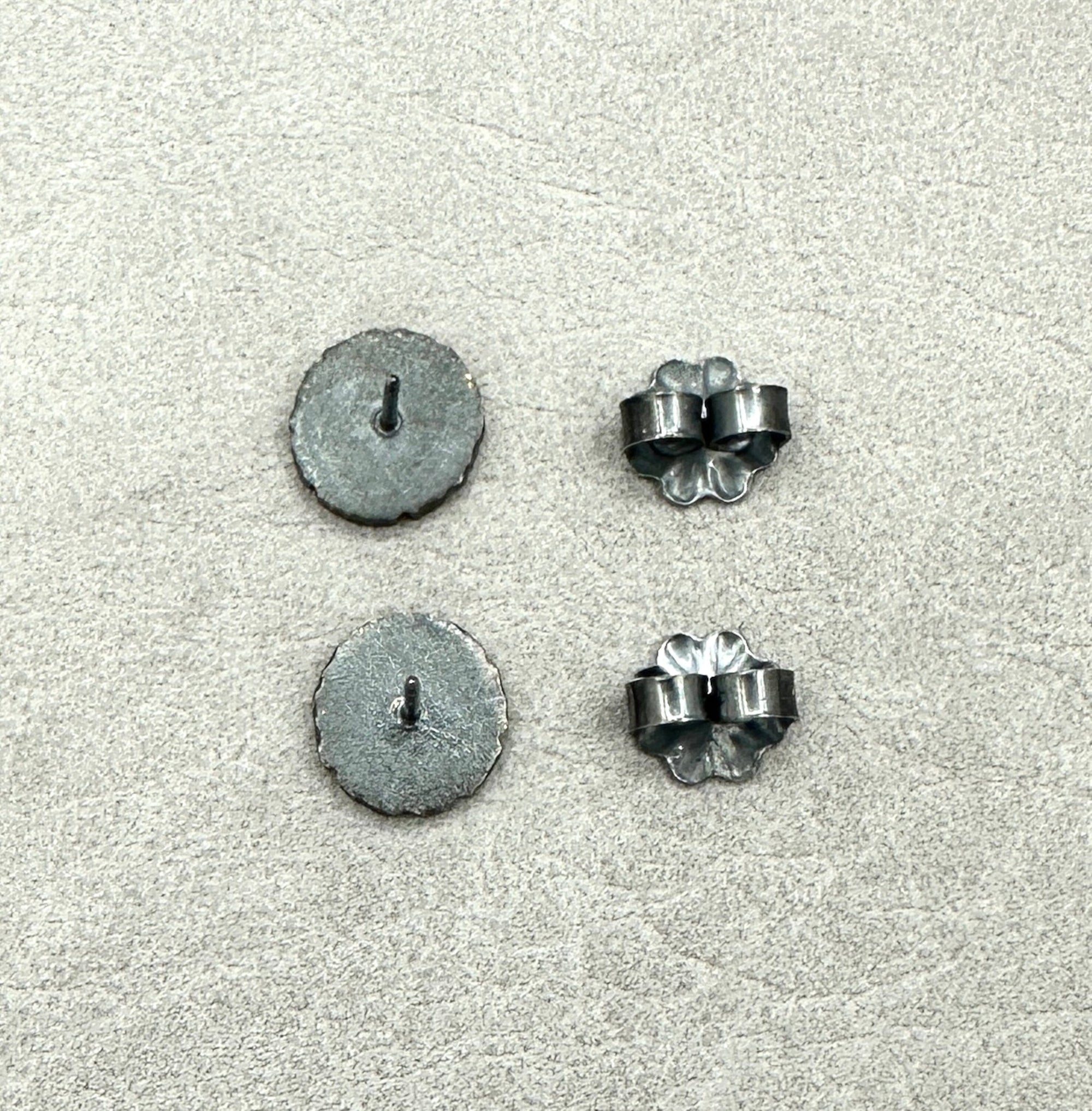 Like a tiny sparkly tree slice, these gold and silver diamond studs are packed with contrast and detail. Textured rings of oxidized silver and 23K encircle flush set lab-grown diamonds for the perfect little cuties you can wear every day.