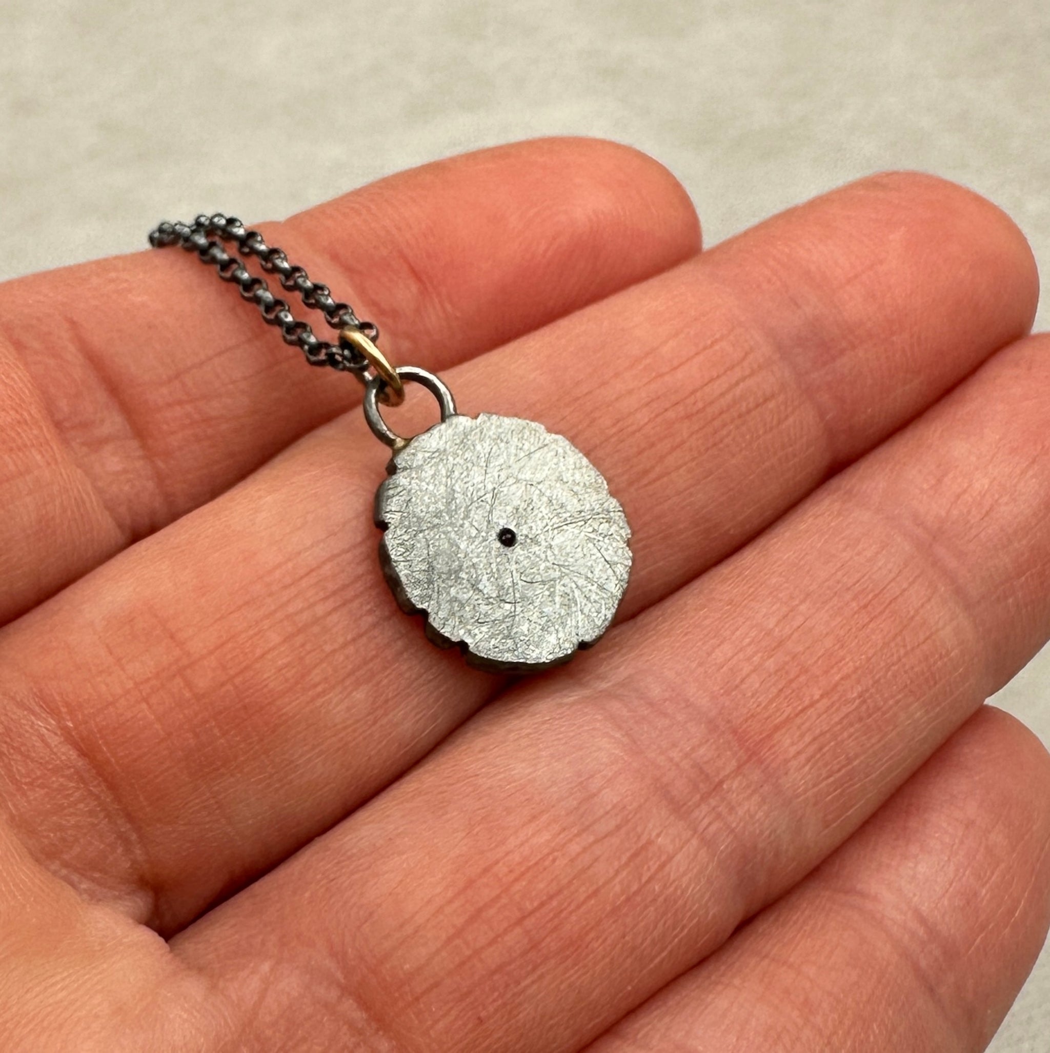Inspired by the iconic redwoods, this pendant features a flush-set white diamond encircled by "tree rings" of textured oxidized silver adorned with 23K gold for a little piece of nature you can wear everyday.